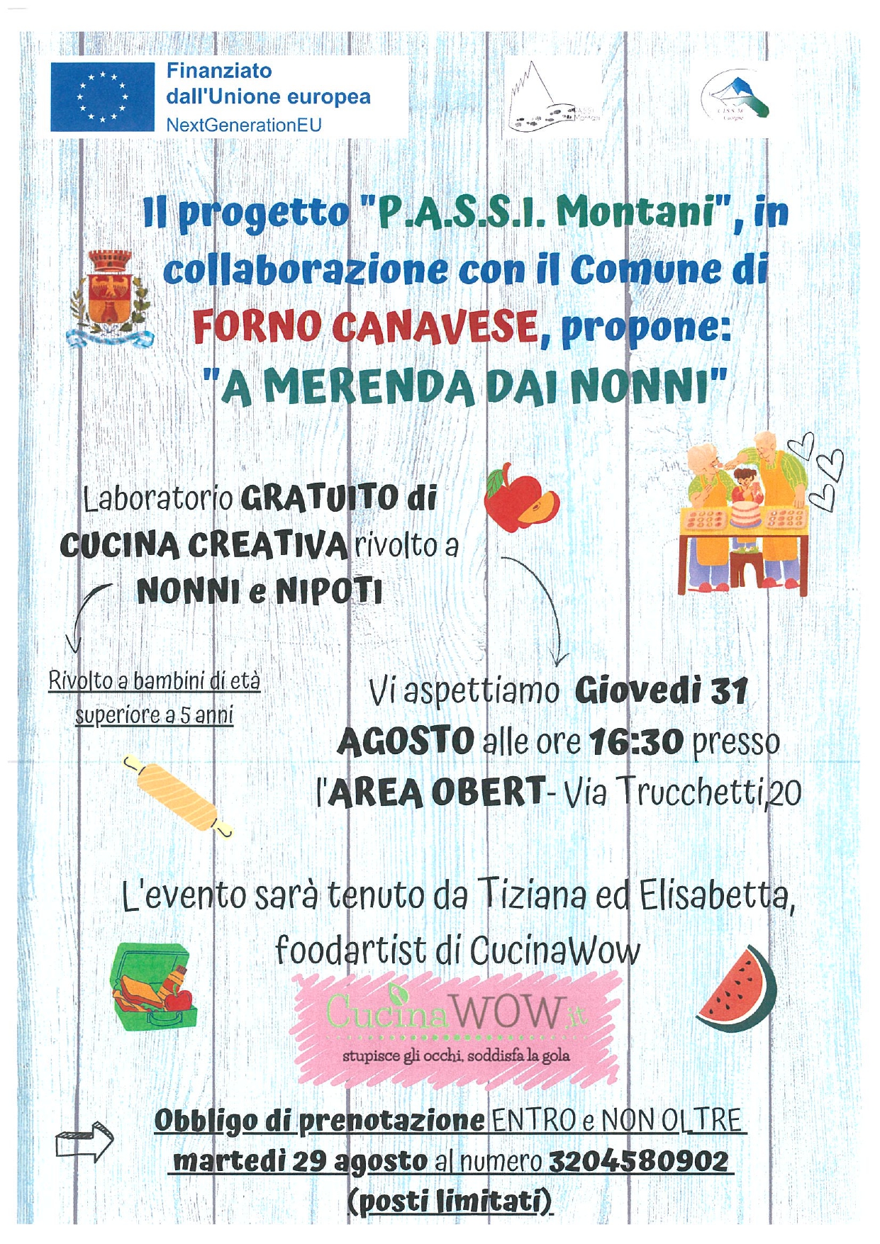 Laboratorio gratuito di cucina creativa rivolto a nonni e nipoti, GIOVEDI' 31 AGOSTO alle ore 16.30 presso l'Area Obert-Via Truchetti 20.