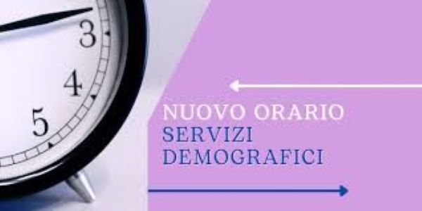 Si informa la cittadinanza che dall'8/7/2024 entrerà in vigore il nuovo orario provvisorio sperimentale di apertura al pubblico dell'ufficio anagrafe e stato civile.