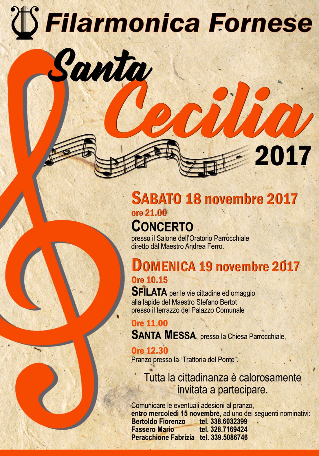 Come da tradizione, la Filarmonica Fornese, si appresta a festeggiare la Patrona della Musica: Santa Cecilia.